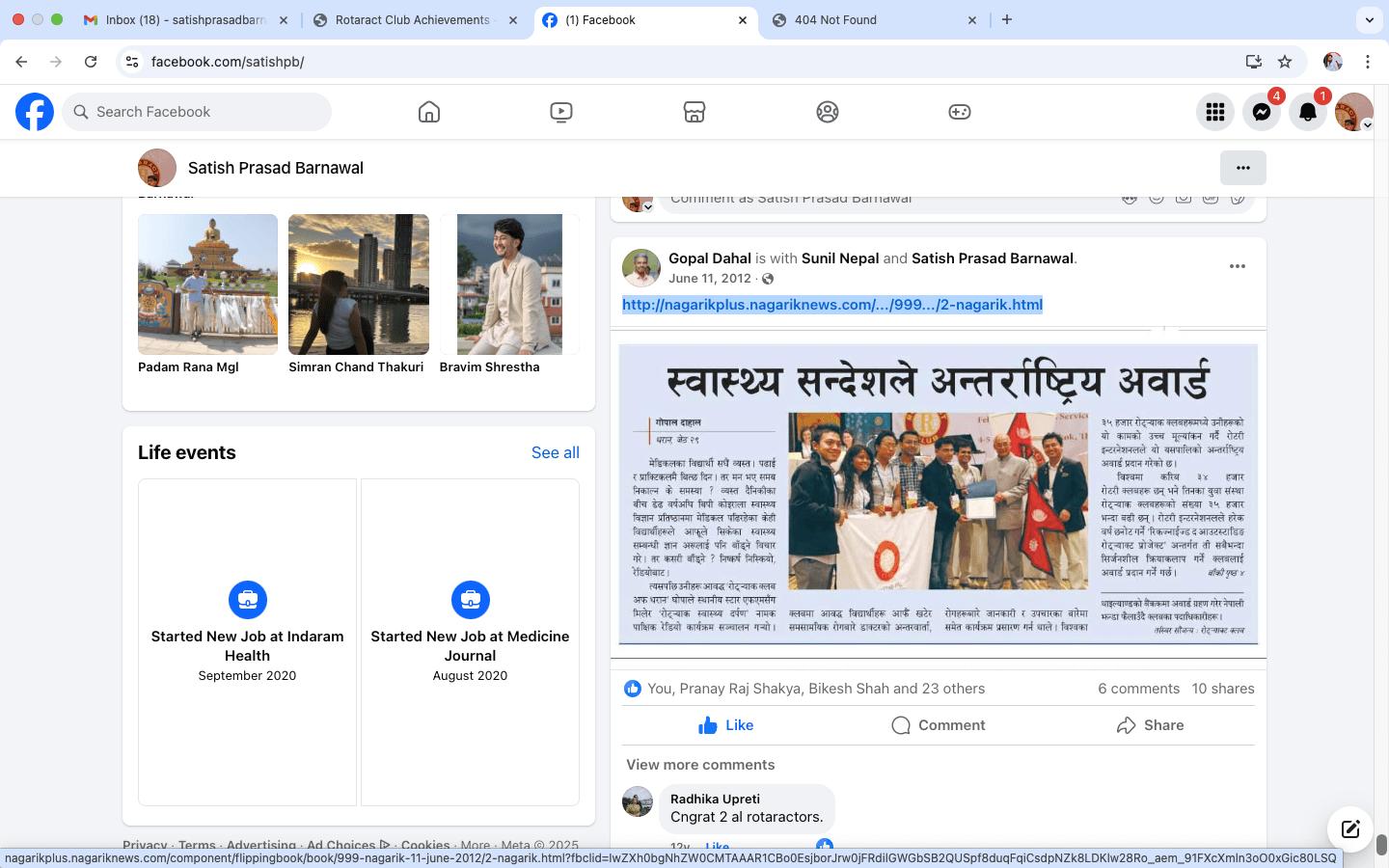 The Rotaract Swastha Darpan Radio Program project from Nepal was recognized as an international award recipient, with Dr. Satish Prasad Barnawal receiving the award as the Founder Chief Coordinator.