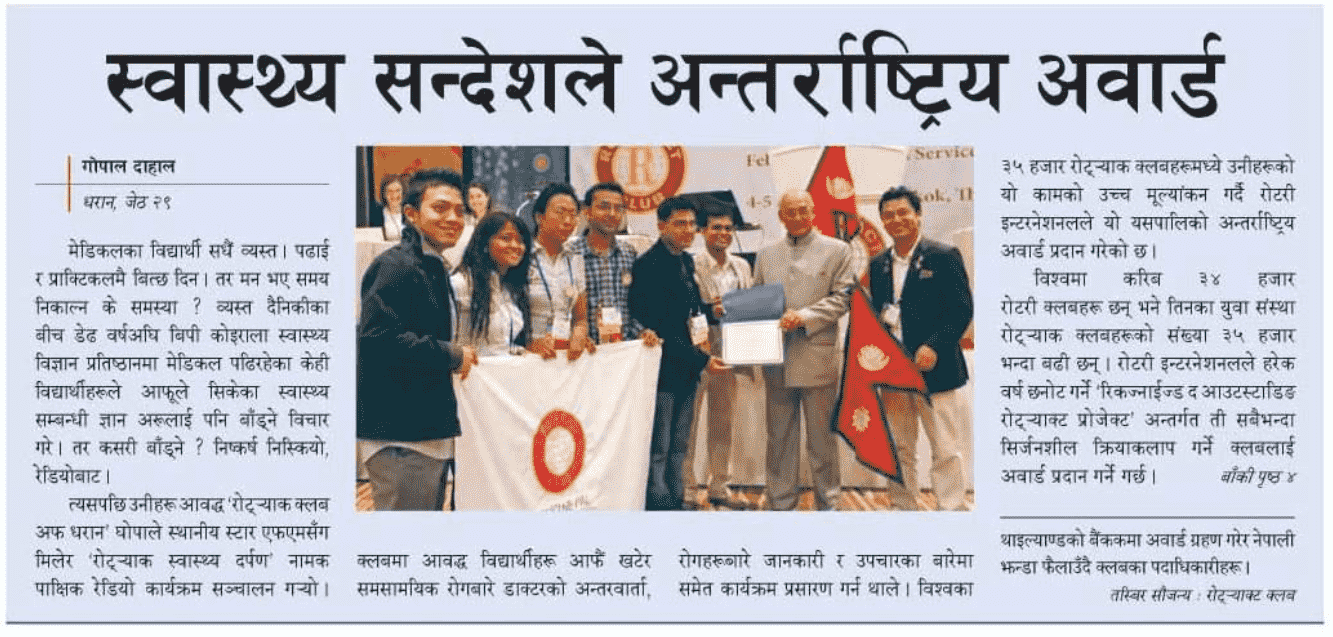 Rotarians from the sponsor club, the Rotary Club of Dharan Ghopa, had secured free studio time to produce the program, provided medical expertise as speakers, and promoted the initiative to other Rotary clubs across Nepal.