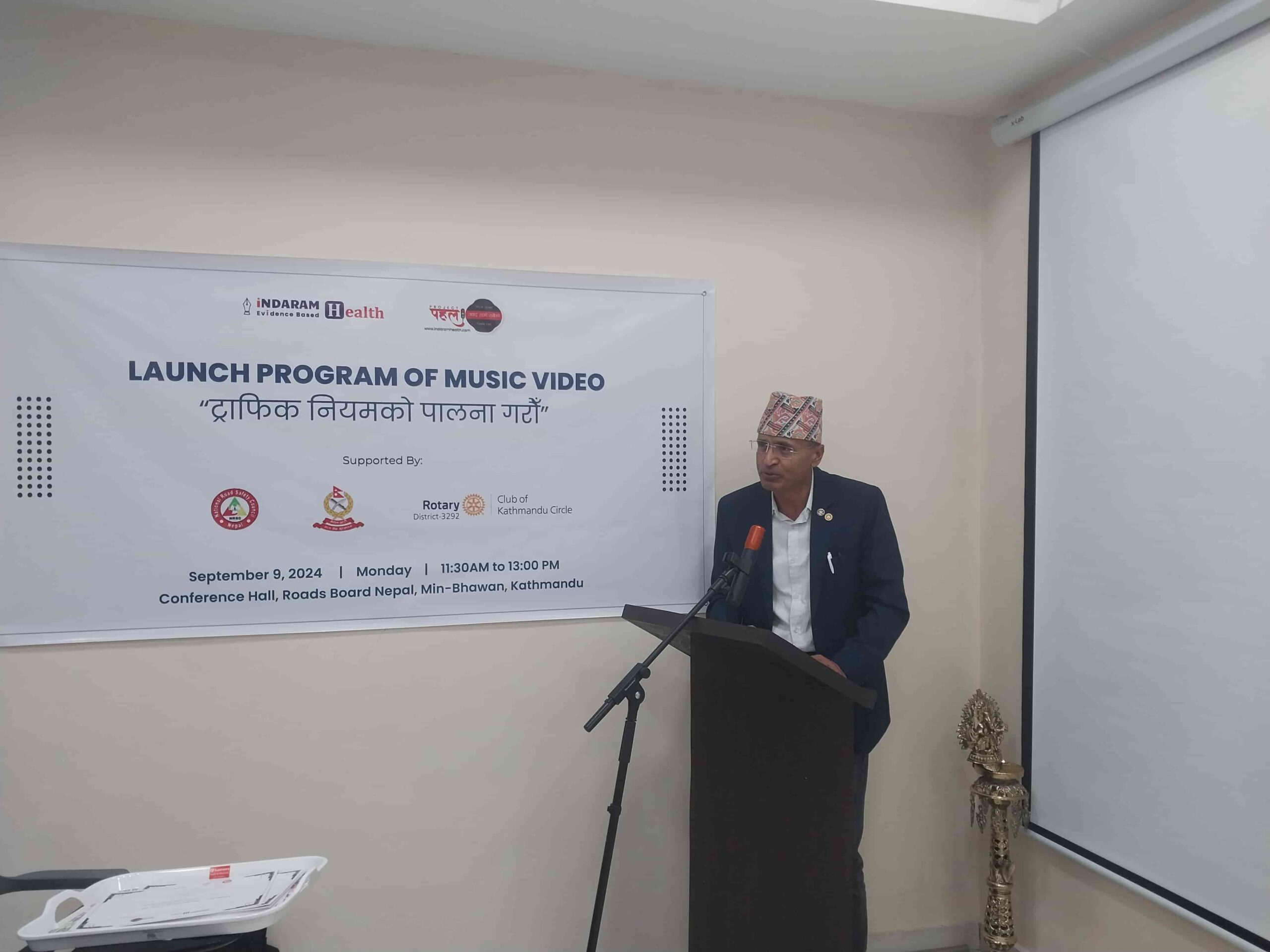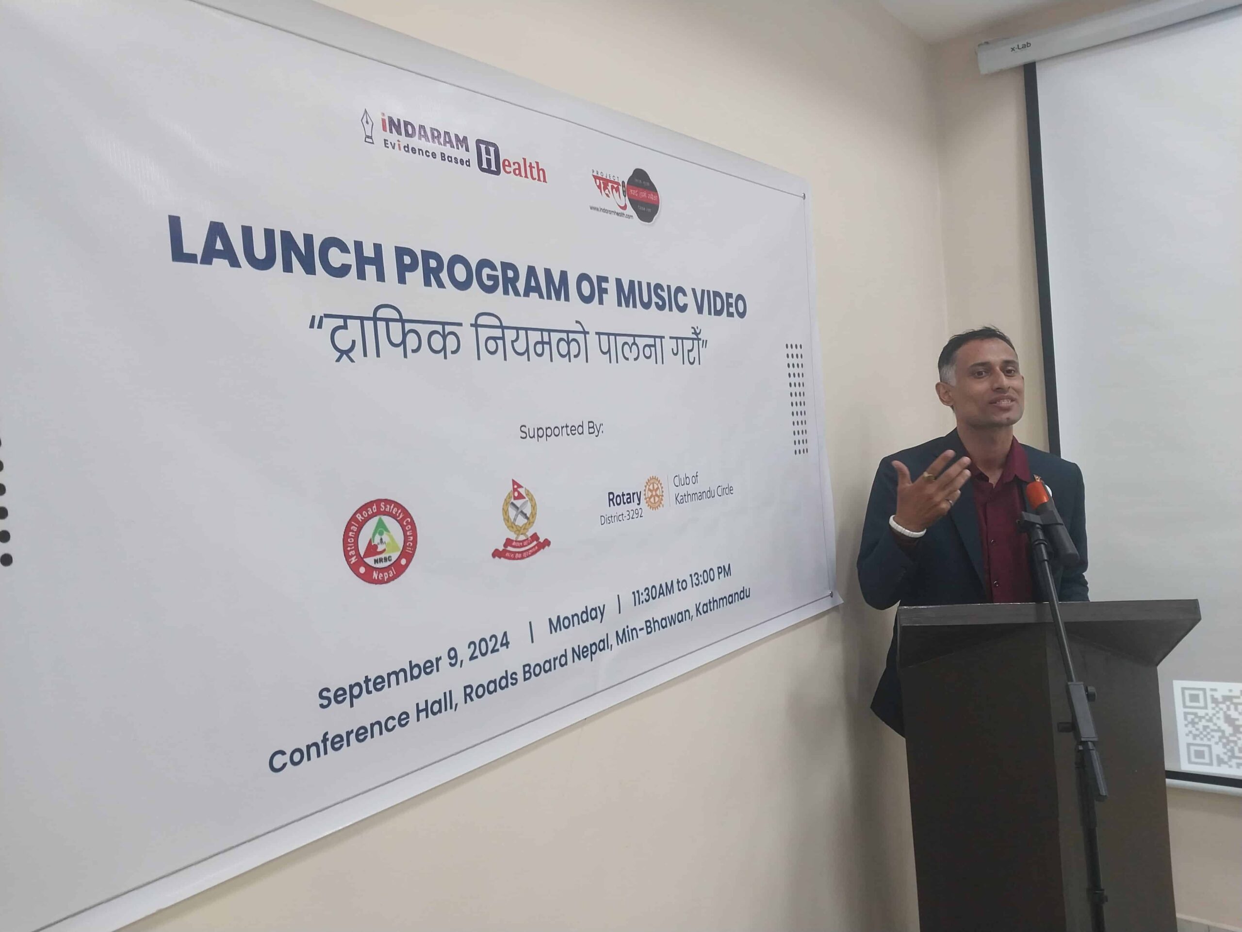 The Road Safety Music Video titled ट्राफिक नियमको पालना गरौँ Launch Program was organized by Indaram Health in collaboration with National Road Safety Council, Nepal Police, and Rotary Club of Kathmandu Circle in the following date and venue.