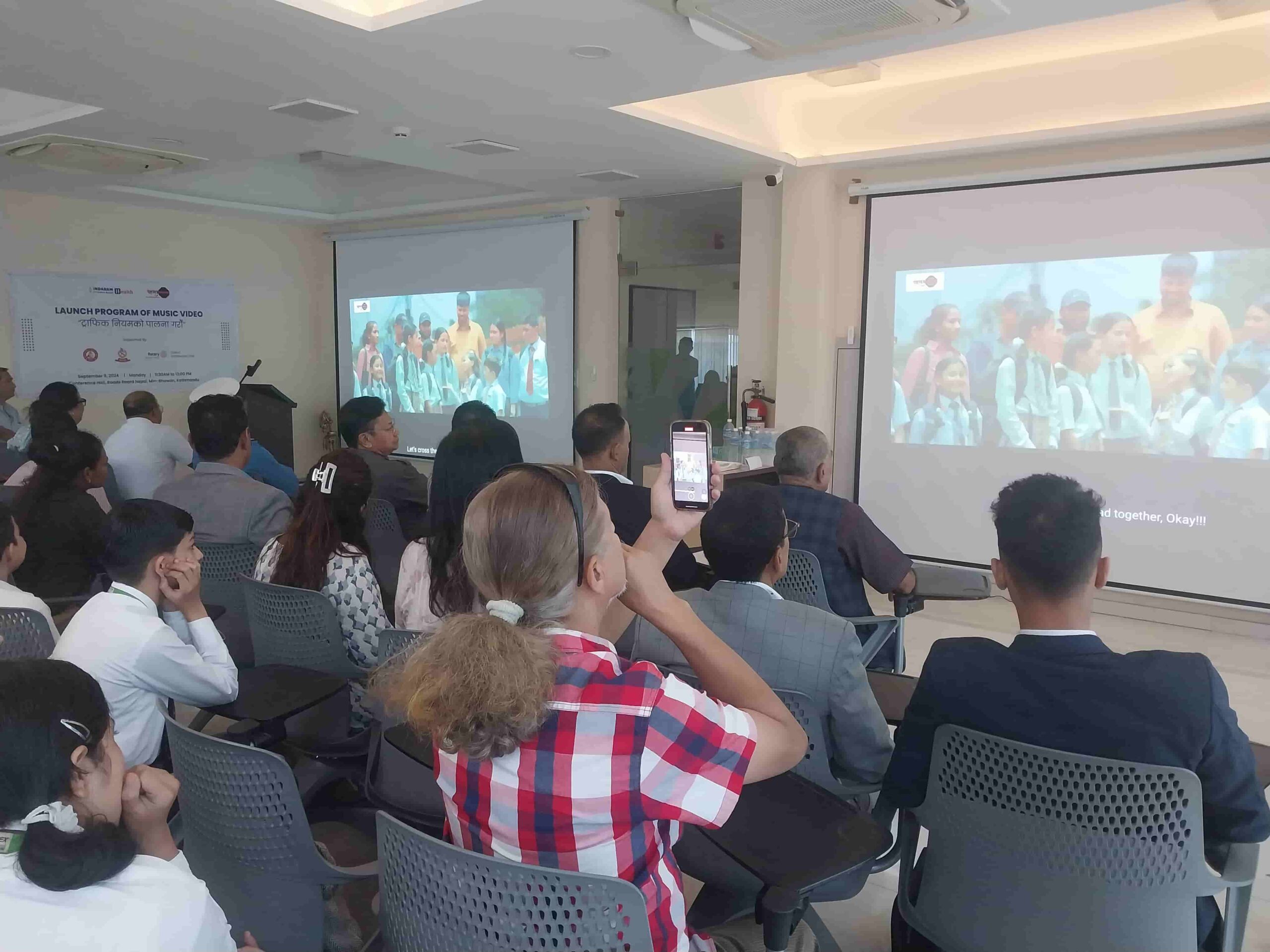 The gathering in the launch program consisted of students and their parents who participated in the video recording along with representatives from National Road Safety Council, Nepal Police, Rotary Club of Kathmandu Circle as well as Road Safety activists in Nepal.
