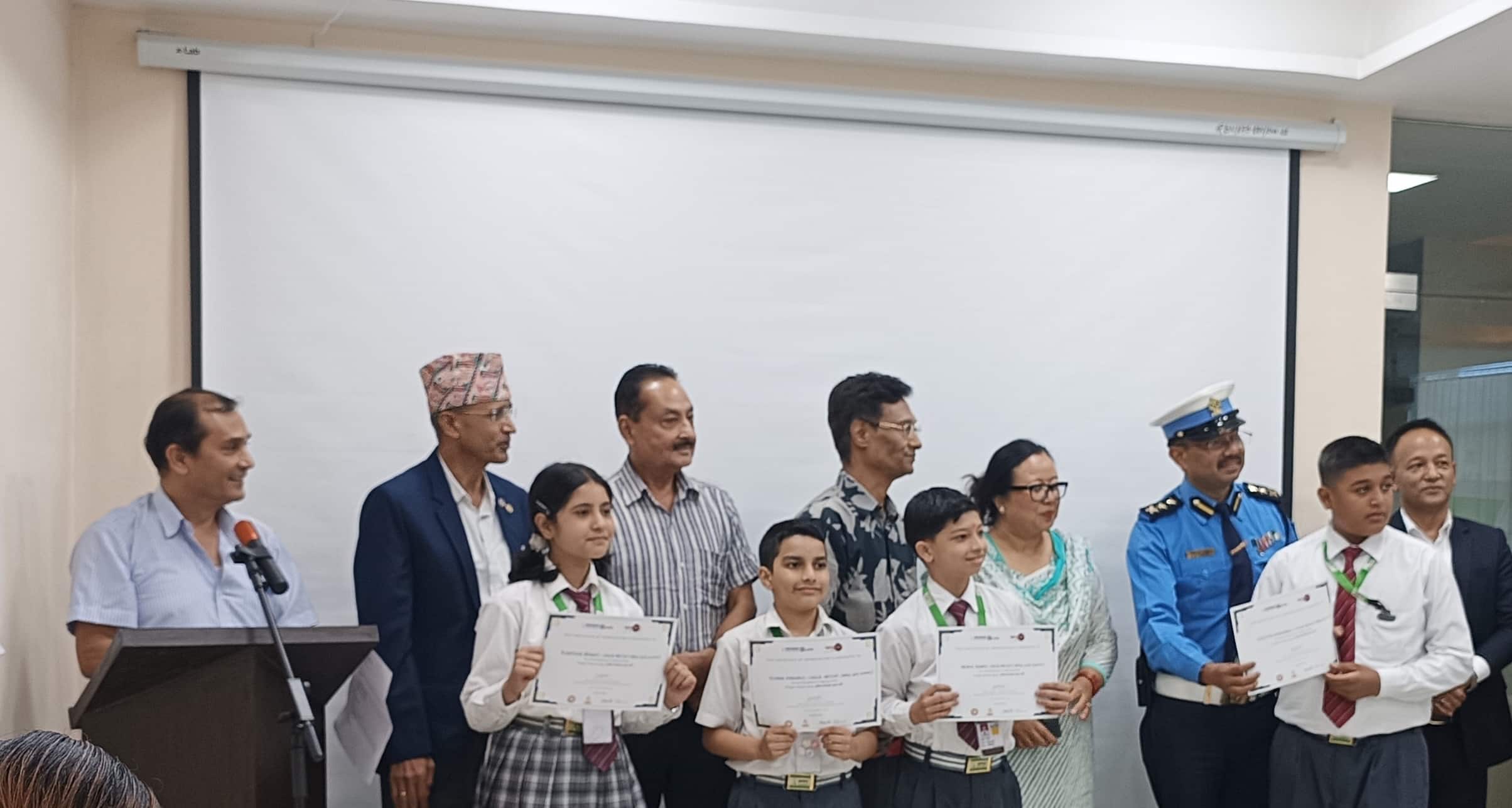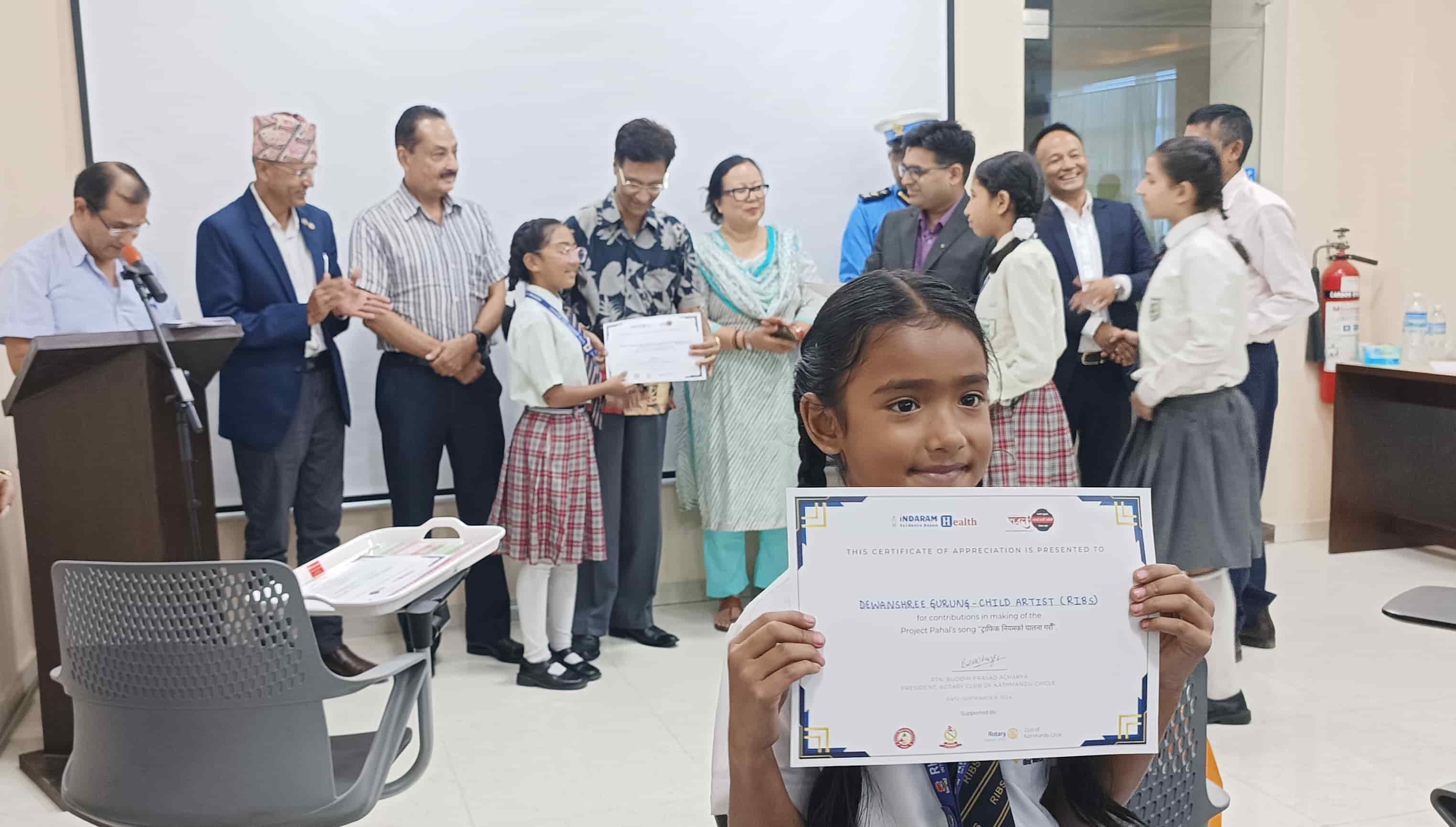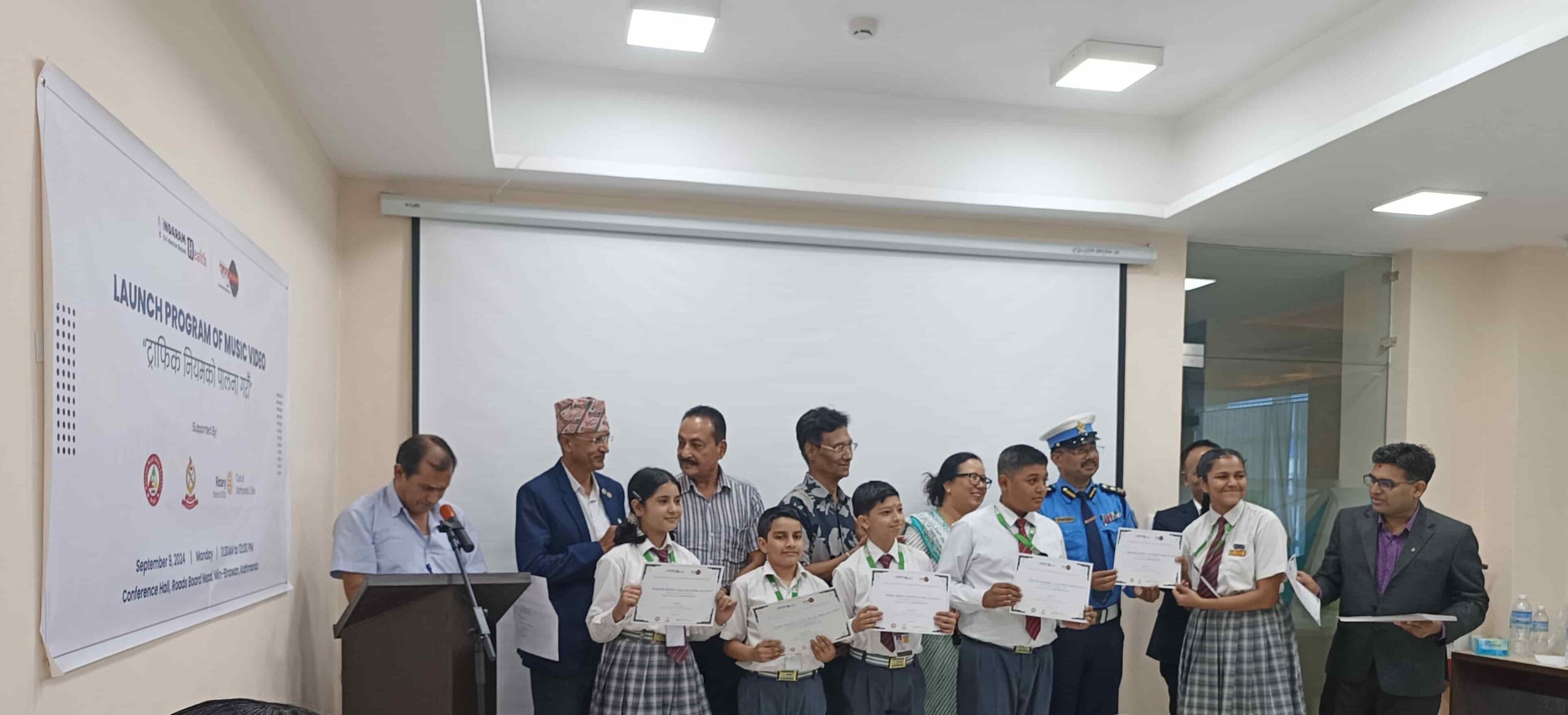 As a token of appreciation, certificates were awarded to the students, key contributors and supporters in the making of the music video. The event effectively engaged children and utilized creative media to deliver a strong message that road safety is a shared responsibility for individuals of all ages. The program concluded with a vote of thanks from Mr. Buddhi Prasad Acharya (President of the Rotary Club of Kathmandu Circle) who acknowledged the hard work and dedication of everyone involved in making the event a success.