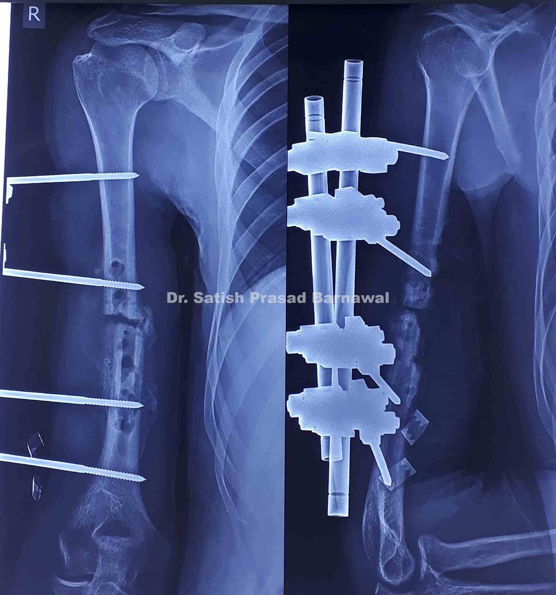 Case 1: Shaft of Humerus Fracture with Infective Non-Union with Implant Failure with Screw and Plate Backout